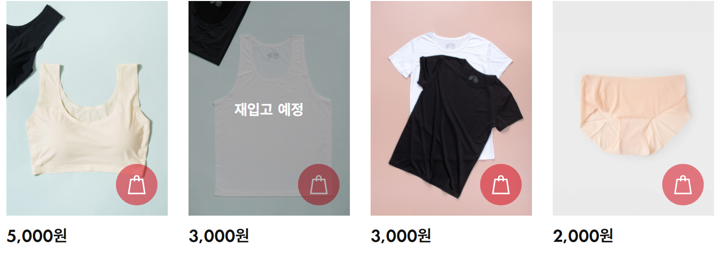 이지쿨 가격은 역시 다이소답게 메슈 U넥 반팔 티셔츠와 냉감 런닝은 3,000원, 메쉬 심리스 브라는 5,000원 심리스 팬티는 2,000원으로 책정되었습니다.