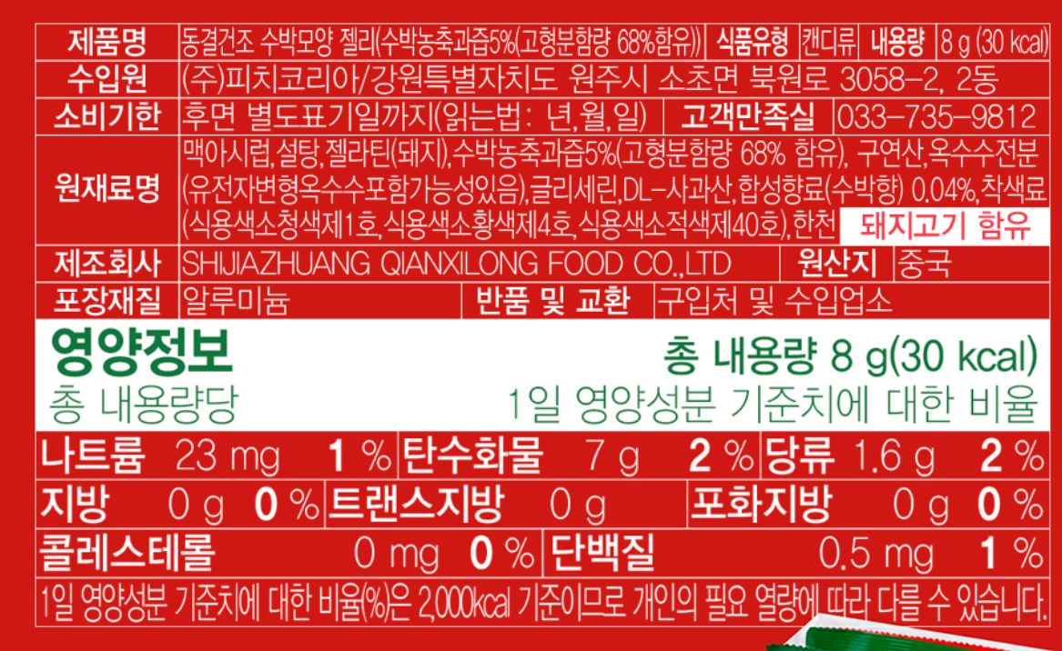 동결건조 수박젤리 영양정보