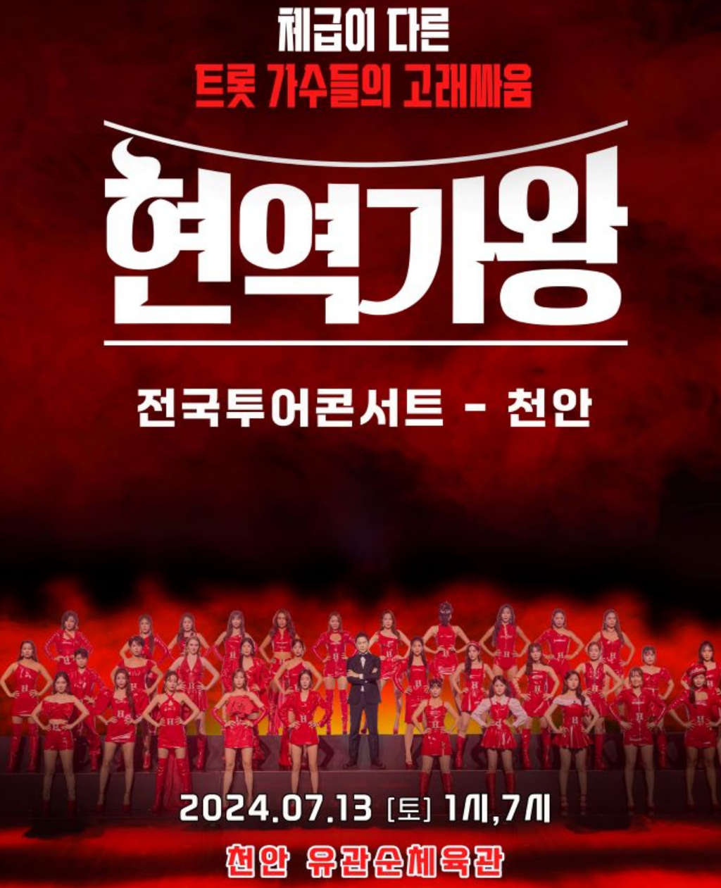 2024년 현역가왕 전국투어 콘서트가 2024년 7월 13일(토) 오후 1시, 오후 7시에 천안에서 열립니다.